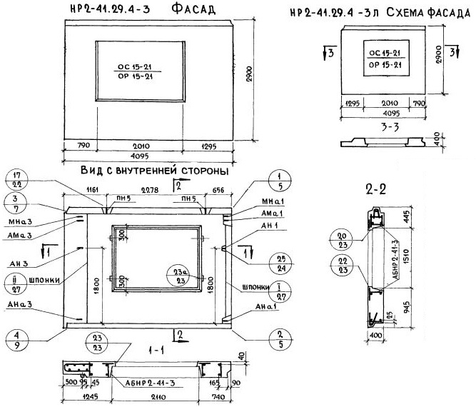 НР2-41.29.4-3л Наружная стеновая панель рядовая по Серии 1.132-1.