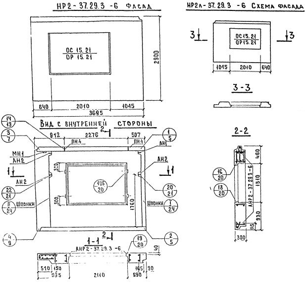 НР2л-37.29.3-6    Наружная стеновая панель рядовая по Серии 1.132-2.